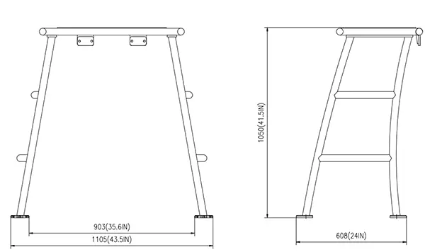 Made from 1.5in aluminum pipe, polished anodized finish. Overall size 31.5IN L X 18.5IN W X 35IN H. Need a space 42IN L X 24IN W for mounting. Covered with EVA foam.