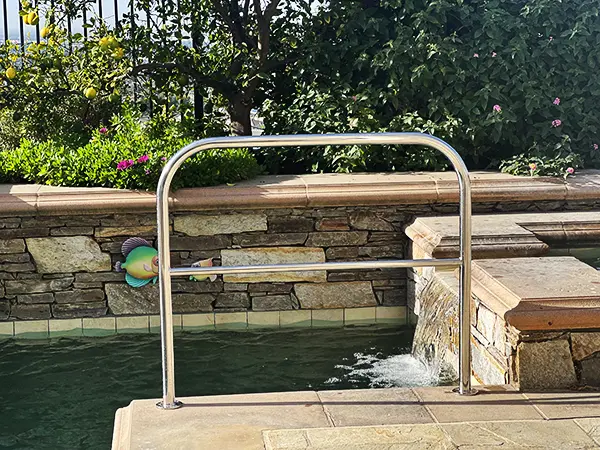 40" wide Platform Staple Rail; 1pcs/package; 2 sets of hardwares (ground pool/ boat deck) are included for immediate innstallation.Made from 1.5in Stainless Pipe.
